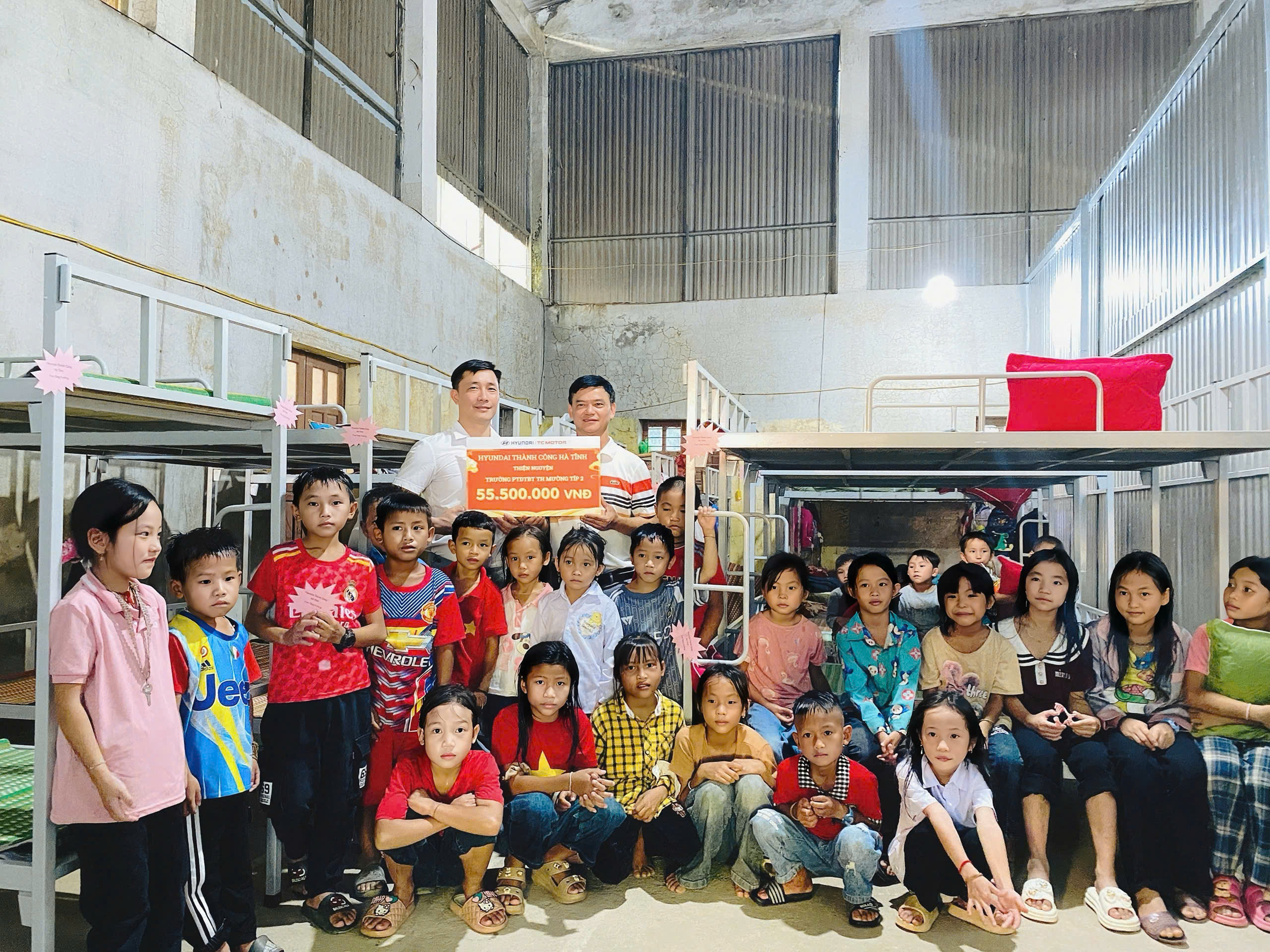 Hyundai Thành Công Hà Tĩnh đã trao tặng cho điểm trường 15 bộ giường tầng, chiếu gối để phần nào đó giúp nhà trường và các em khắc phục được khó khăn trong đợt thiên tai vừa qua.