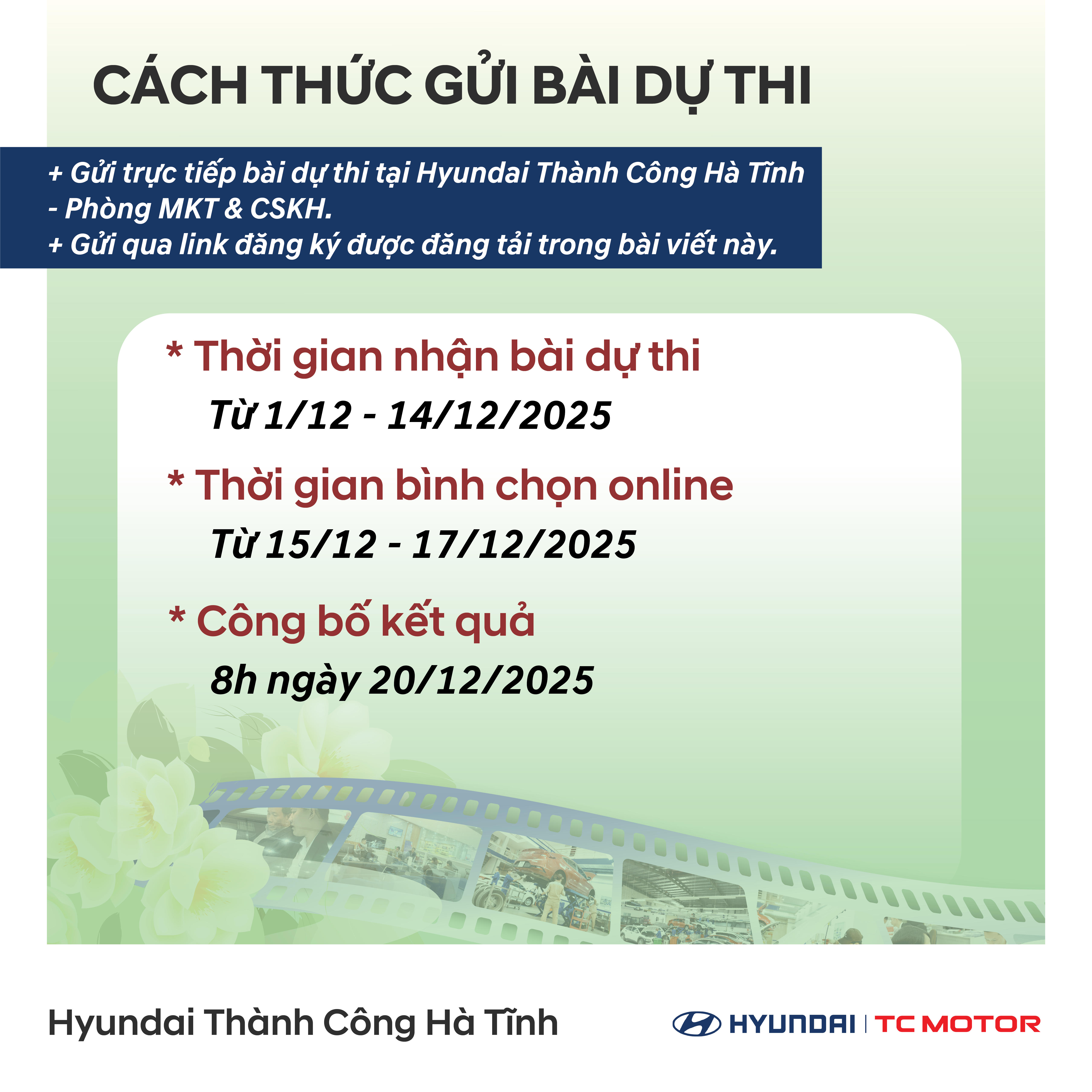 Cuộc thi không chỉ là sân chơi để các em nhỏ thỏa sức sáng tạo, mà còn là lời tri ân sâu sắc mà Hyundai Thành Công Hà Tĩnh gửi Quý khách hàng đã luôn tin tưởng và đồng hành trong suốt thời gian qua. Chúng tôi rất mong được đón nhận thật nhiều tác phẩm ý nghĩa và cảm xúc từ các em!
